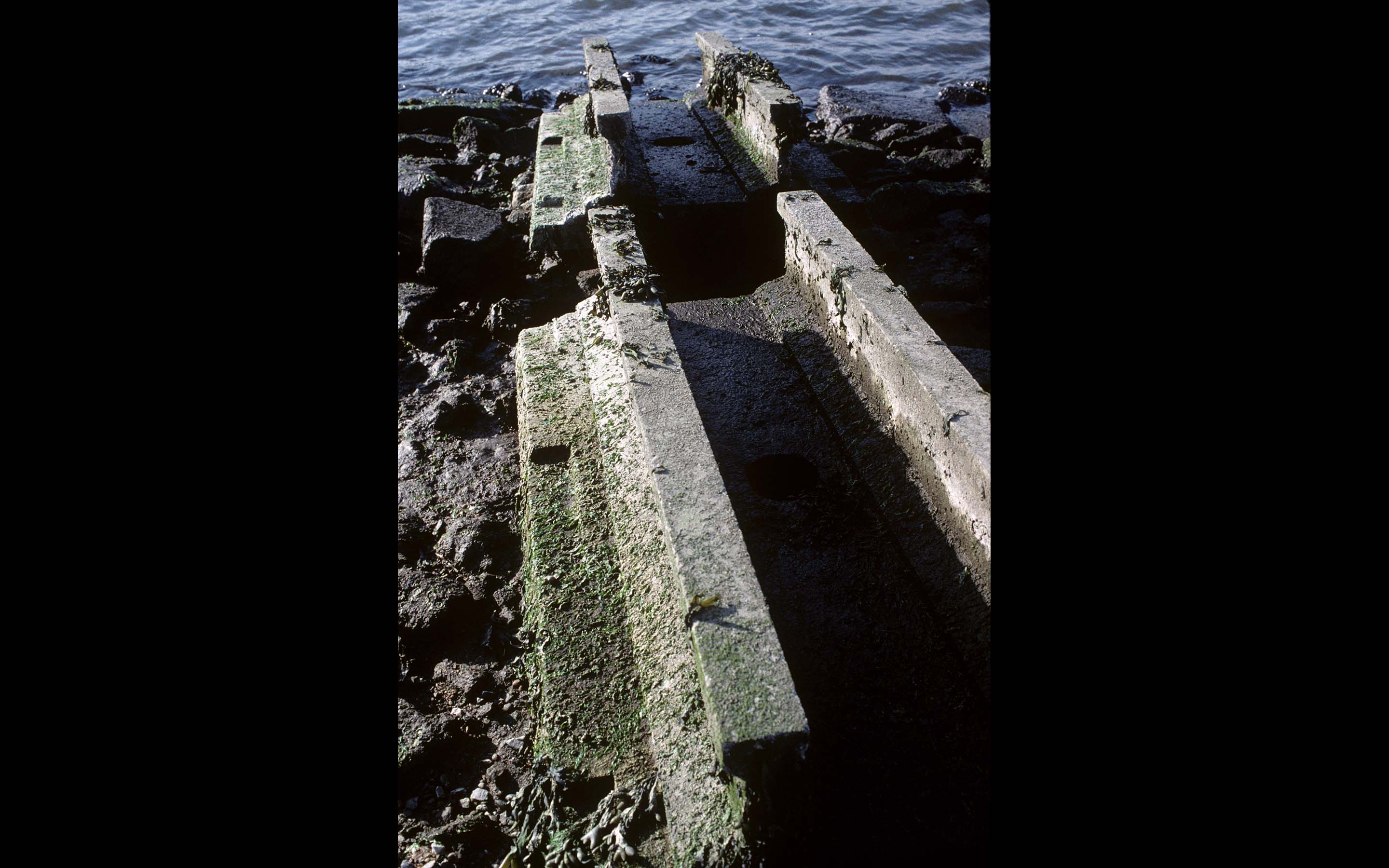 Residue from a Forgotten Daydream, 1997. Site-specific landscape at Socrates Sculpture Park, Long Island City, Queens, NY. Dimension: 504 x 216 x 192 inches. Material: concrete. Installation assistance: Harold Jensen, John Clement. Field support: Philippe Baumann.