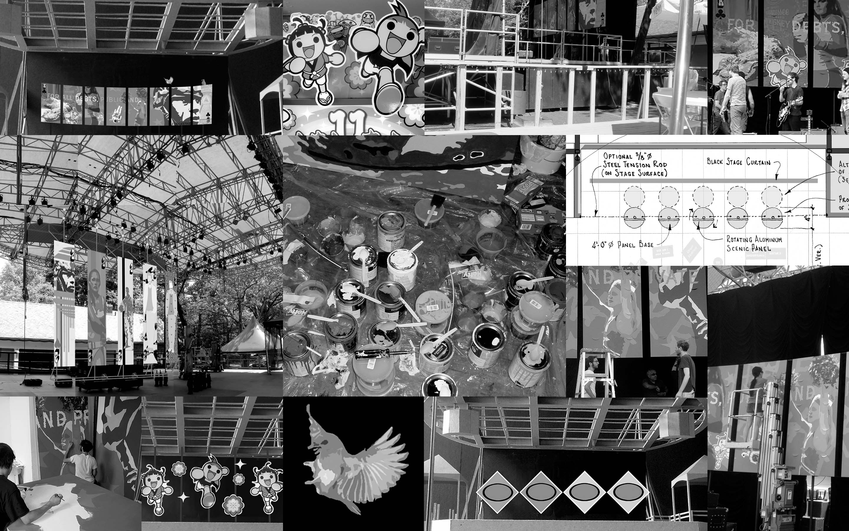 Summerstage: The National, 2008. Backdrop created for The National’s performance at Summerstage in Central Park, New York, NY. Dimensions: 93 x 367 inches. Material: eight latex paint canvas panels, wood stretchers. Lead assistants: Samuel Galvansky, Ji Yong Kim. Installation assistance: Kazue Soma.