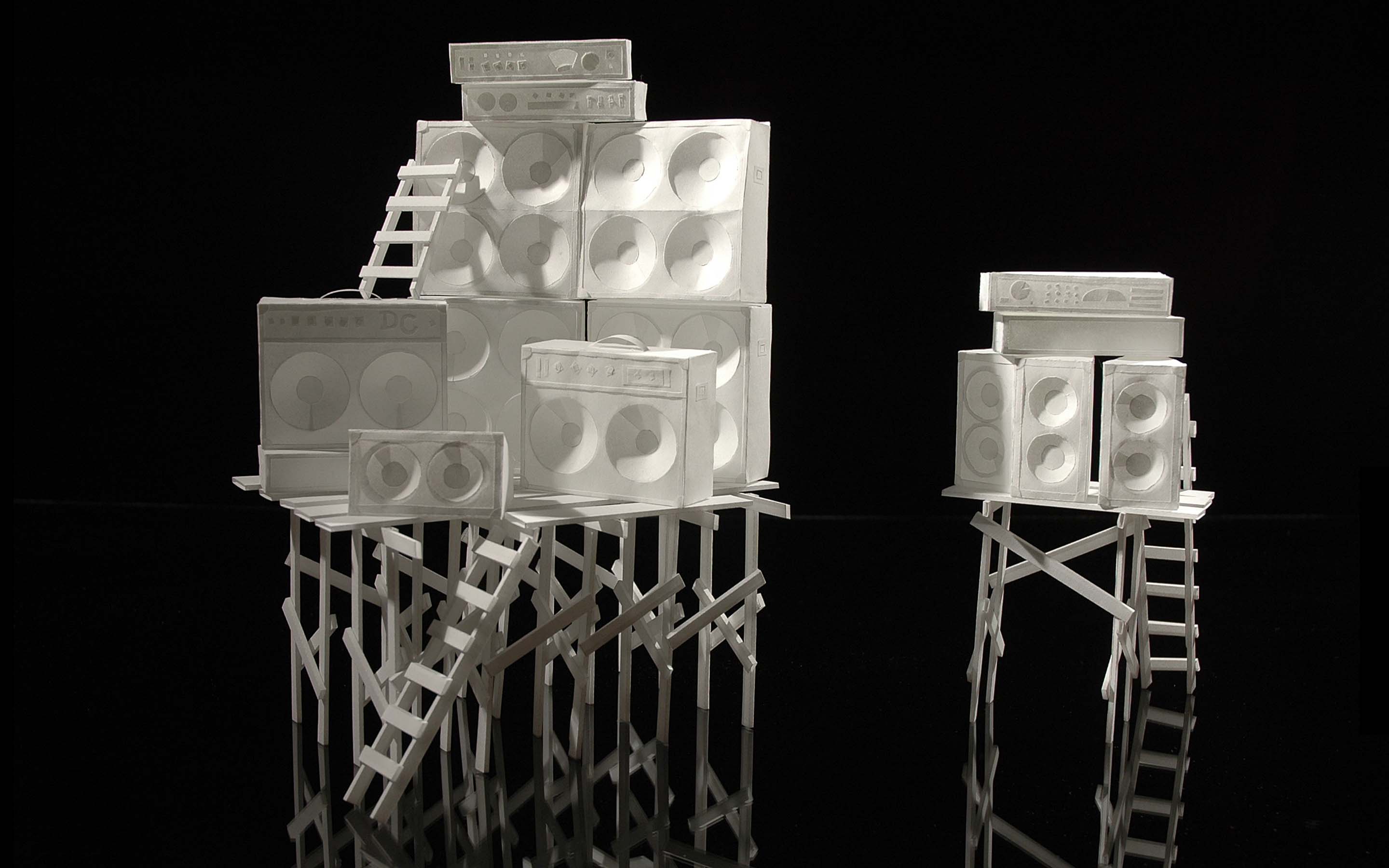 Aviary Jackson: Daniel Carlson, 2010. Artwork created for Daniel Carlson’s Aviary Jackson CD (cover and booklet). Dimensions: 19 x 14 x 9 inches (orange studio), 14 x 6 x 15 inches (luminous chapel). Material: tracing and colored paper, plastic. Lead assistant: Samuel Galvansky. Photography: © Daniel Carlson.